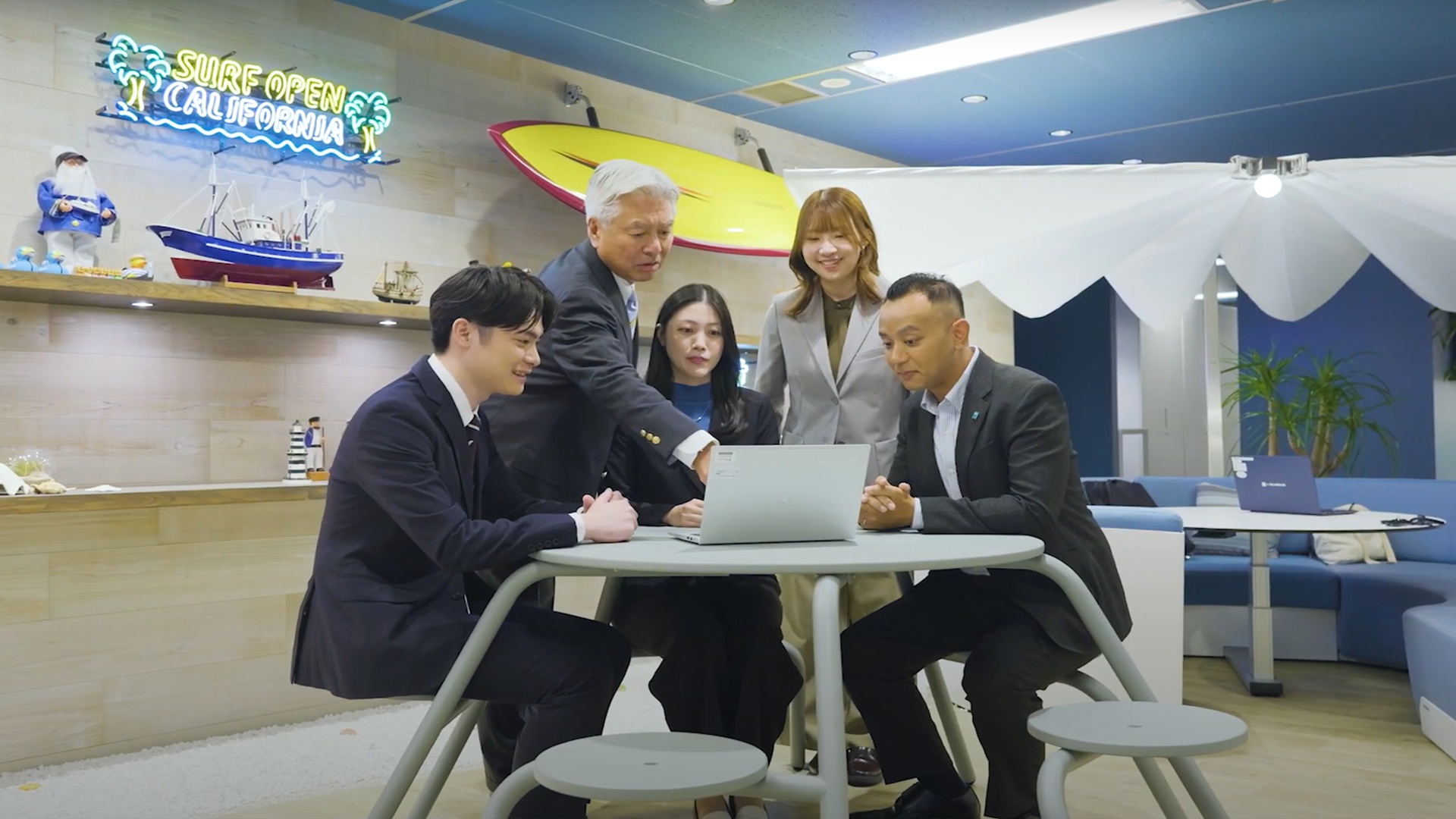 今回のTV CM企画は、当社のブランド力を高める活動に今後さらに注力していくととともに、最前線で活躍する社員の姿をステークホルダーの皆さまに直接届けたいという挑戦が込められています。本CMでは、当社代表取締役社長の舩越と、管理部門・事業部門で働く4名の社員を起用しました。